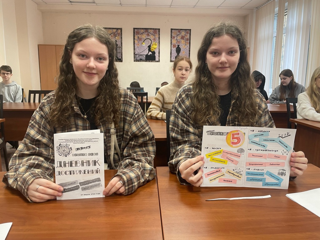 Мешкова Вера Юрьевна, педагог-психолог школы, и Пономарева Екатерина Станиславовна, старший методист, провели для ребят игру-квест «Прояви себя». Во время квеста участники интенсива прошли станции на решение логических задач и педагогических кейсов, тест на выявление лидерских качеств, выполнили практическое задание на определение организаторских способностей и поучаствовали в практике командного взаимодействия. По итогам квеста участники заполнили «Дневник достижений», который показал сильные и слабые стороны в формировании их личностных качеств, необходимых в профессиональной самореализации.